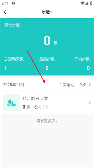 3、在运动数据页面,即可查看历史运动数据信息。