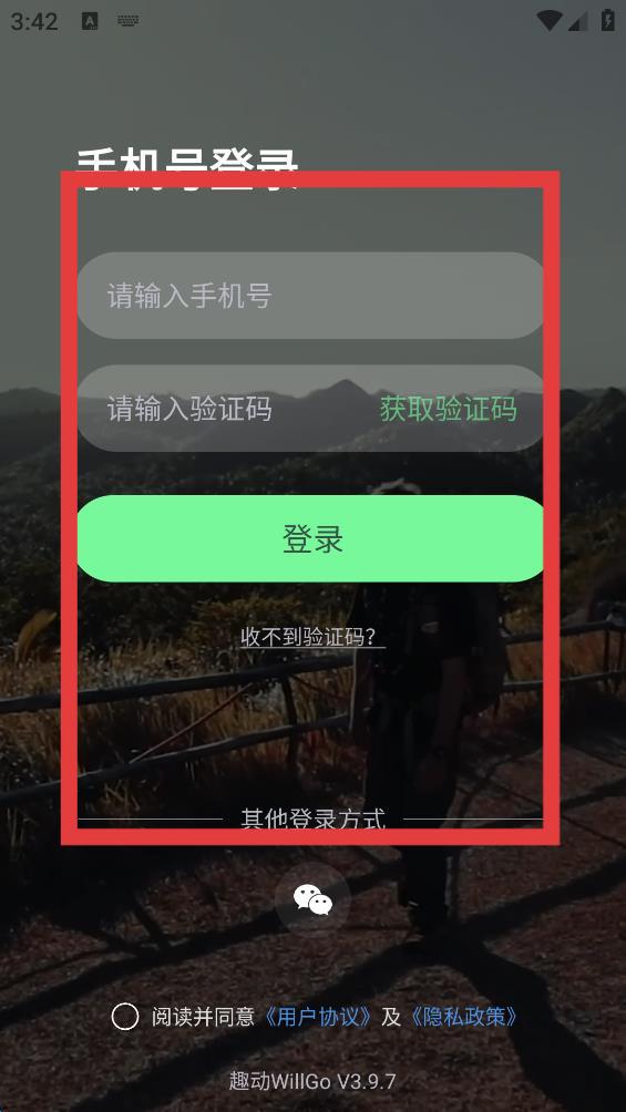 1、进入手机号登录页面,输入手机号,点击获取验证码并输入验证码。