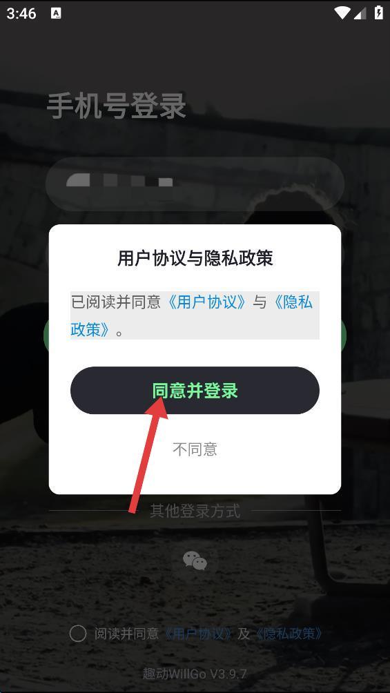 2、勾选阅读并同意用户协议及隐私政策,在弹出窗口点击同意并登录。