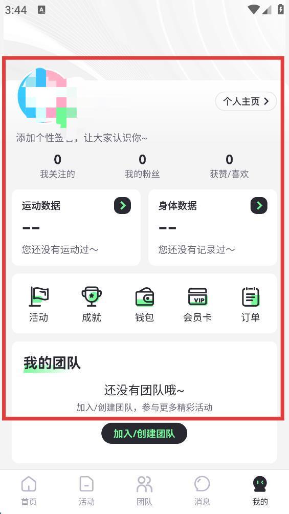 4、完成上述步骤,即可成功登录趣动App,进入个人账号主页。