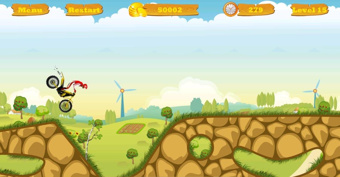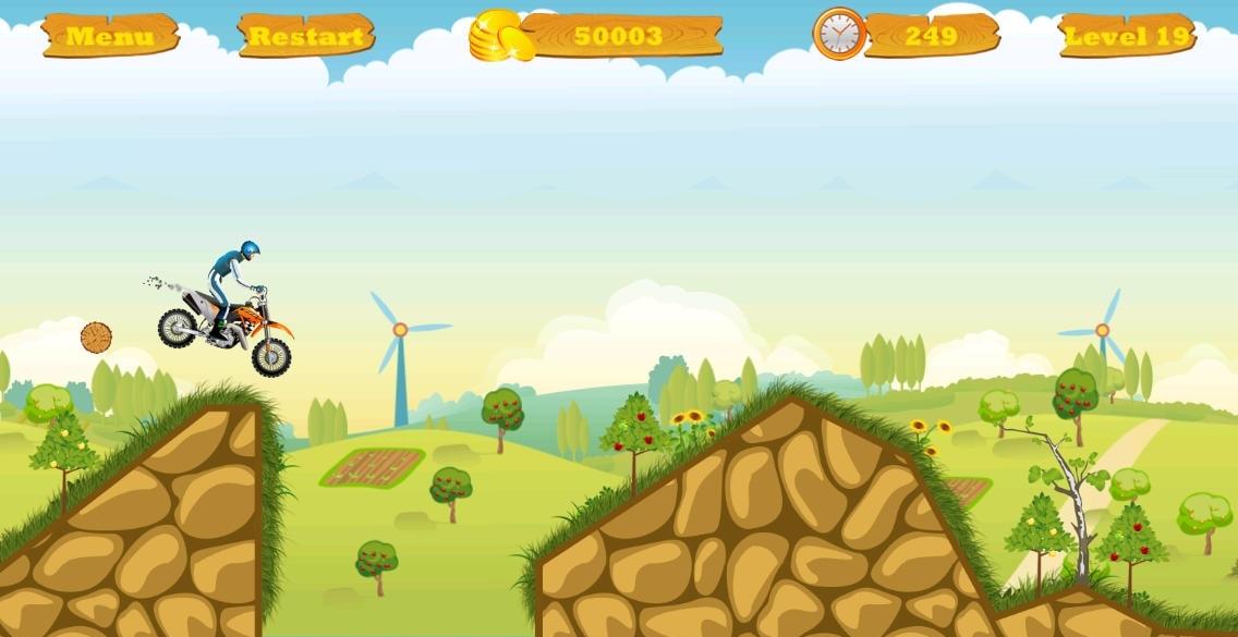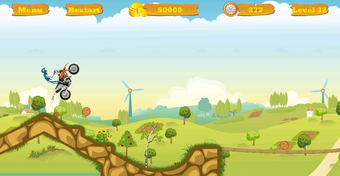 1、点击标有【1】的关卡按钮进入游戏,此为初始关卡,可开启你的摩托冒险之旅,熟悉操作机制。