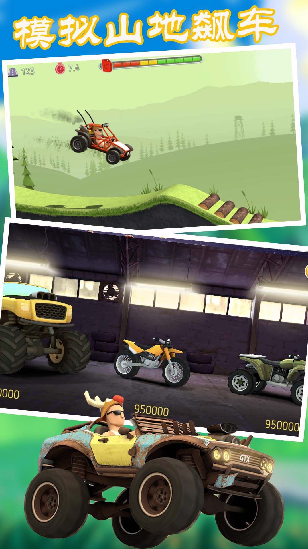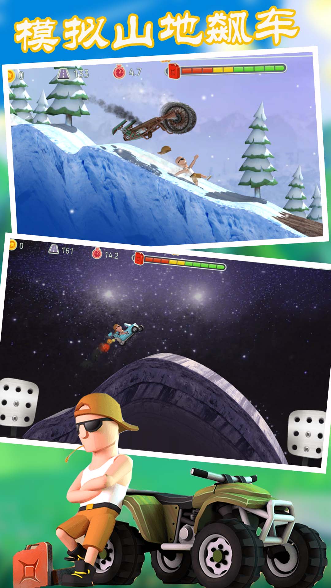 --在这款游戏中你可以自由驾驶各种山地车,完成你的竞速比赛,发挥你超高的驾驶水平。