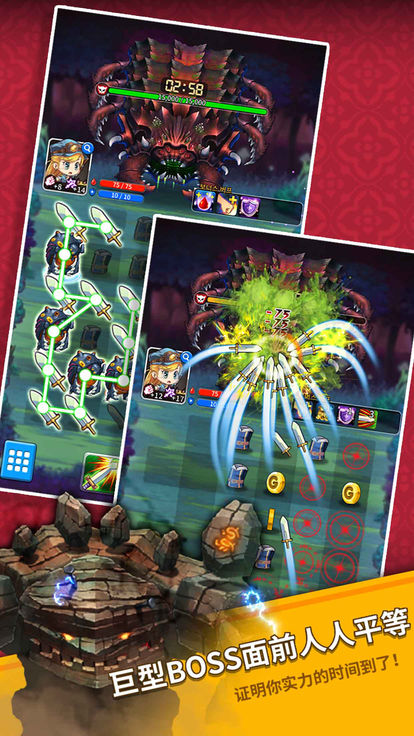 3、轻松连线就可以冒险战斗,各种关卡等你来挑战,激战巨型boss,体验超爽冒险之旅!