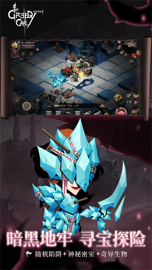 贪婪洞窟2是一款探险类手游,玩家将扮演一名探险家深入地牢,探索宝藏,与怪物作战。游戏拥有丰富的装备系统和技能系统,玩家可以通过收集装备和提升技能来增强自己的实力。同时,游戏还支持多人联机,玩家可以邀请好友一起探险,共同寻宝。