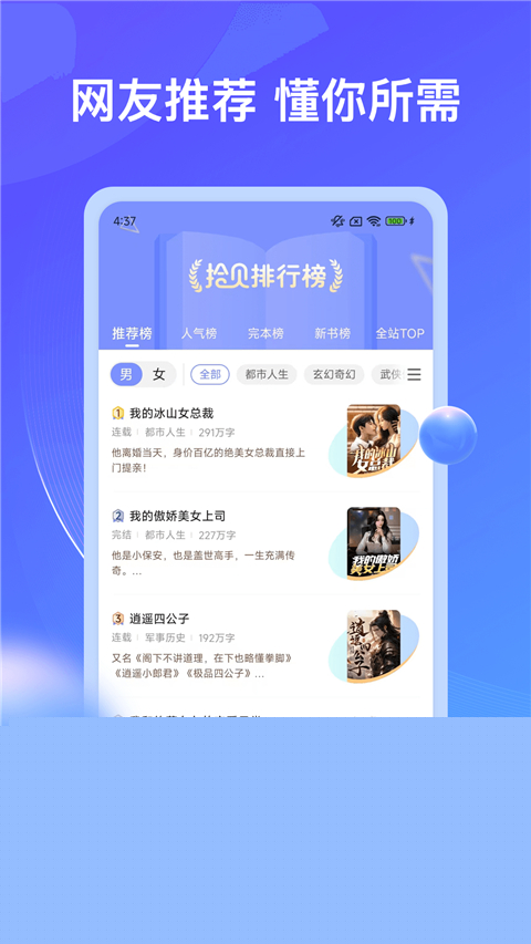 拾贝小说App是一款主打正版资源与免费阅读体验的电子书阅读App,涵盖都市人生、武侠仙侠、科幻末世、现代言情、古代言情等多种热门题材,支持离线缓存、听书模式、自动翻页与夜间模式等功能,满足不同场景下的阅读需求。拾贝小说App提供海量书籍内容与精选推荐机制,结合阅读记录同步与快捷入口功能,方便用户随时续读,同时针对碎片化阅读习惯推出篇幅较短的作品分类,让用户能够更快读完整个故事,整体定位偏向资源丰富、更新稳定且操作便捷的免费小说阅读平台。