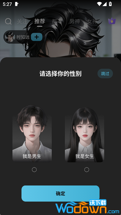 打开APP并选择性别,以便系统推荐合适的AI角色。