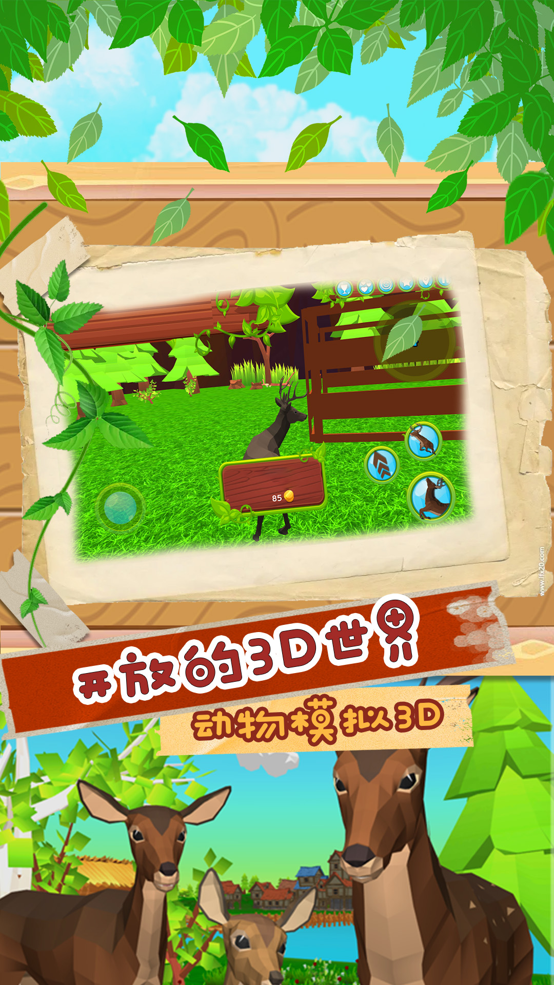 模拟可爱小鹿的养成游戏。游戏画面颜色舒适,小鹿也刻画的十分卡哇伊。玩家在游戏里面将成为这样一头可爱的小鹿,和家族一起生活在森林当中,当然这里面也存在着你们的天敌,注意保护好自己不要被捕食。