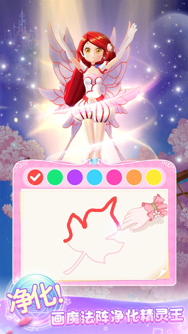美丽的花仙谷里,隐藏着许多换装关卡,成功换装点亮花灯,小花仙的模样又精致了许多~练习花朵魔法,控制花瓣飞舞,画魔法阵,净化精灵王,小花仙的成长又会前进一步喔!