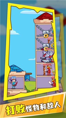 1、游戏的玩法很简单,每个怪物都有战力展示,消灭比你低的怪物,提升自己的战斗力。