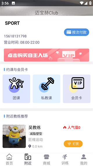 发现附近的教练和健身房,自主选择入场