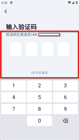 5、在输入验证码页面,将发送至对应手机号的验证码填入输入框,完成账号创建。