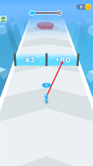 2、角色显示数字【1】时,优先选择【+80】区域提升数值,再靠近【x3】区域,快速扩大角色规模以应对后续挑战。
