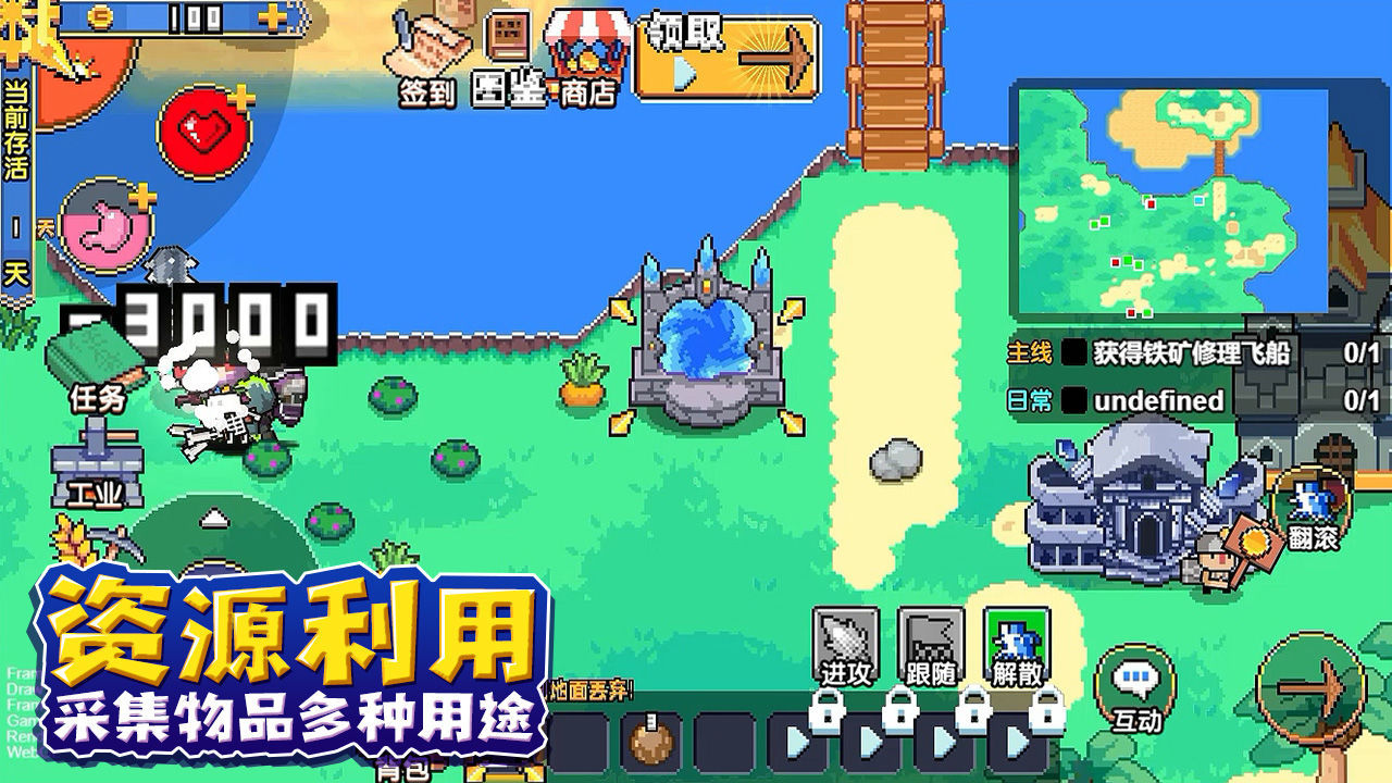 1、一款卡通风格的模拟生存手机游戏,一起体验神奇的旅程,完成不同的冒险;