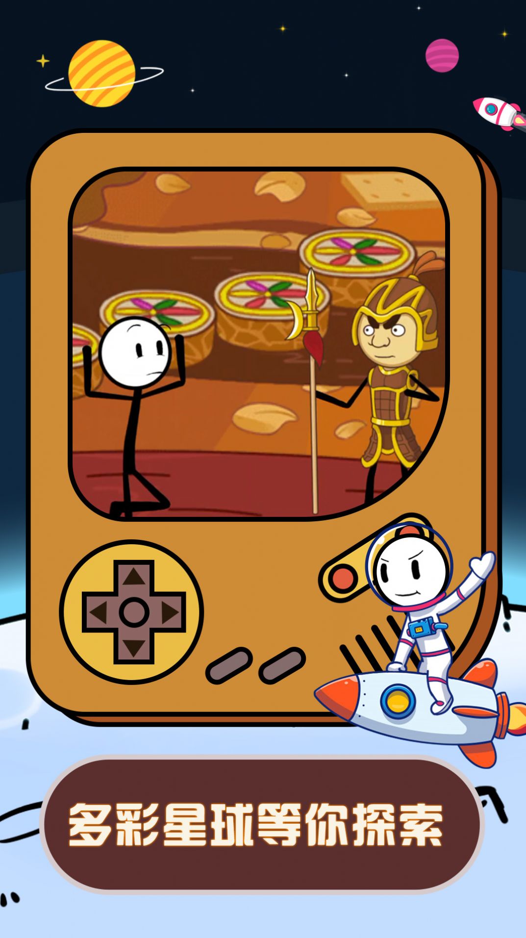1、和火柴人一起在星际之中一起来完成穿越冒险,开启你们的寻宝之旅。