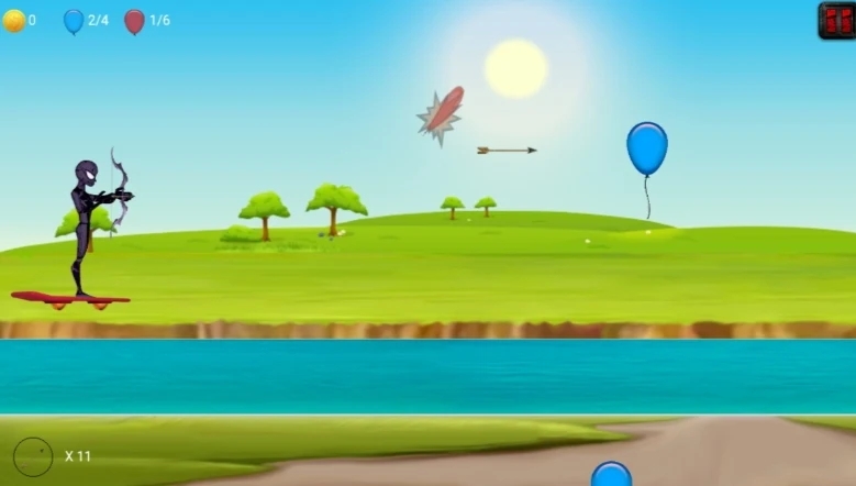 1、游戏简单但容易上瘾。把箭从弓上拉回来射箭,弹出不同大小和颜色的气球。