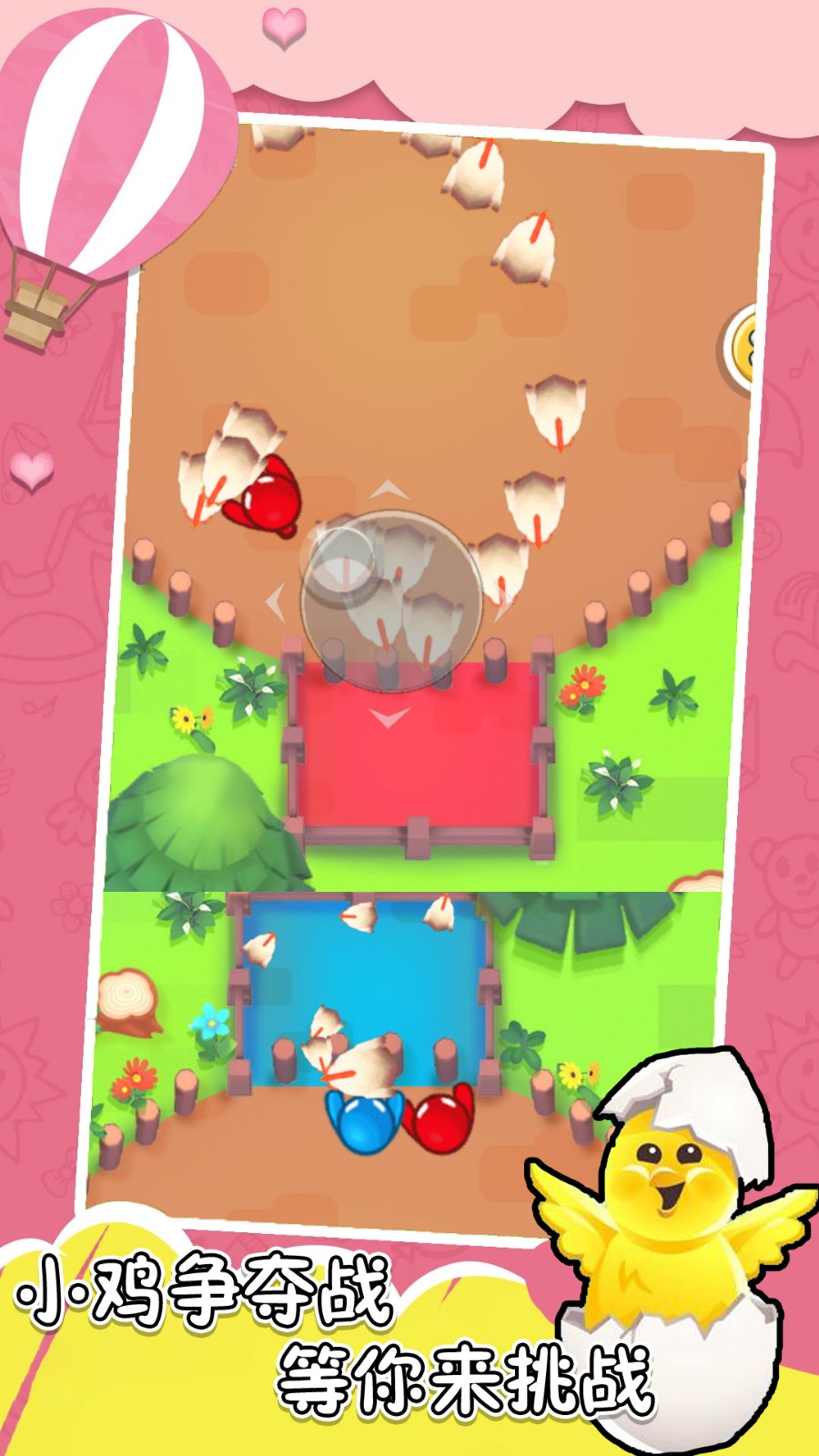 小鸡争夺战是一款休闲趣味小游戏,玩家需要在规定的场地内,尽可能的获得更多的小鸡并且获得小鸡解锁更多的关卡道具使用,获得更多地乐趣,喜欢的用户快来下载试试吧!