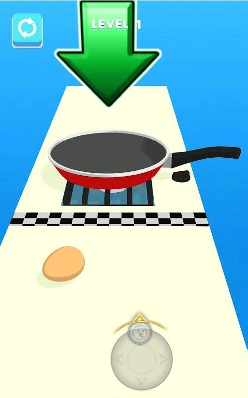2、滑动屏幕控制鸡蛋的移动,躲避各种障碍物,并成功走到锅里就能获得胜利。