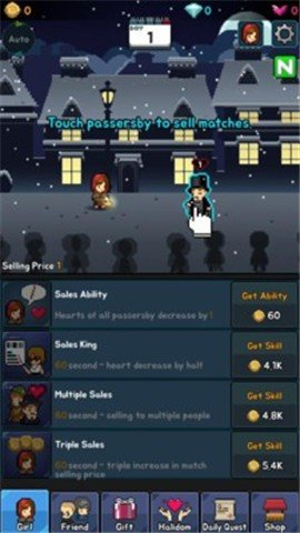 聚集更多的穷人与您合作,请提高火柴女孩的销售能力,完成游戏挑战;