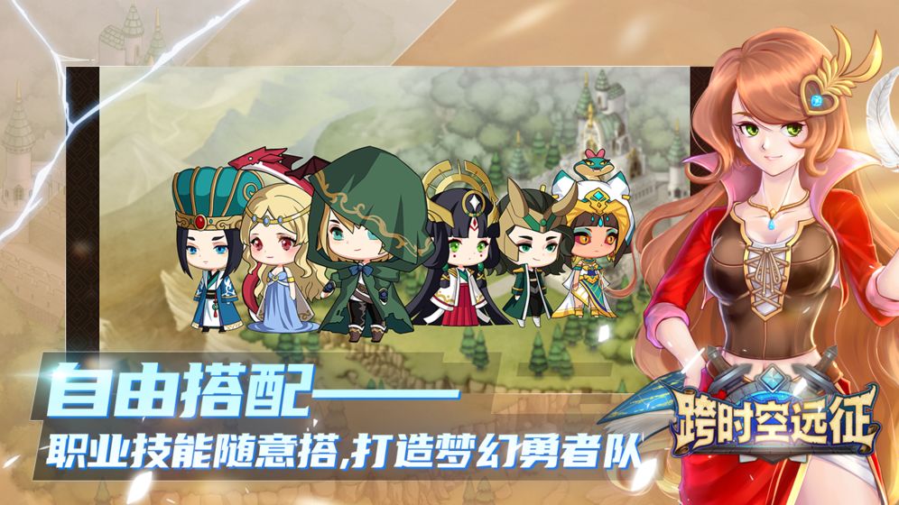 跨时空远征是一款超好玩的放置休闲冒险类型的游戏,游戏讲述了一个神秘的冒险大陆---拉布美大陆,这里有着不同的种族生存,由黑暗大帝率领的魔王军,凭借魔法与魔物的力量,势如破竹的侵略人类的居住地,为了对抗魔王的来袭,操控了时空之力,召唤跨越各个时空的勇者,组成队伍一起对抗魔王军.